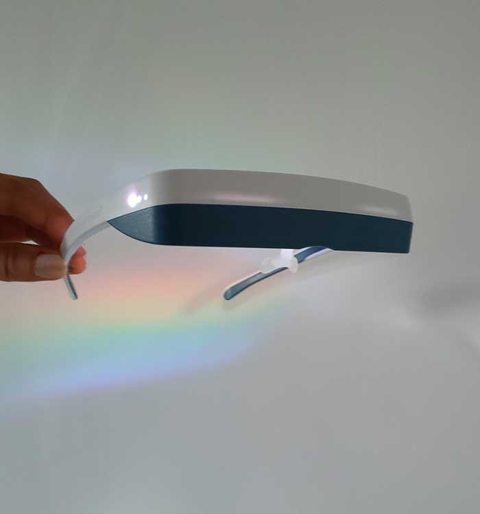 - La lumière du soleil ou de la luminette est envoyée dans l’oeil de haut en bas.